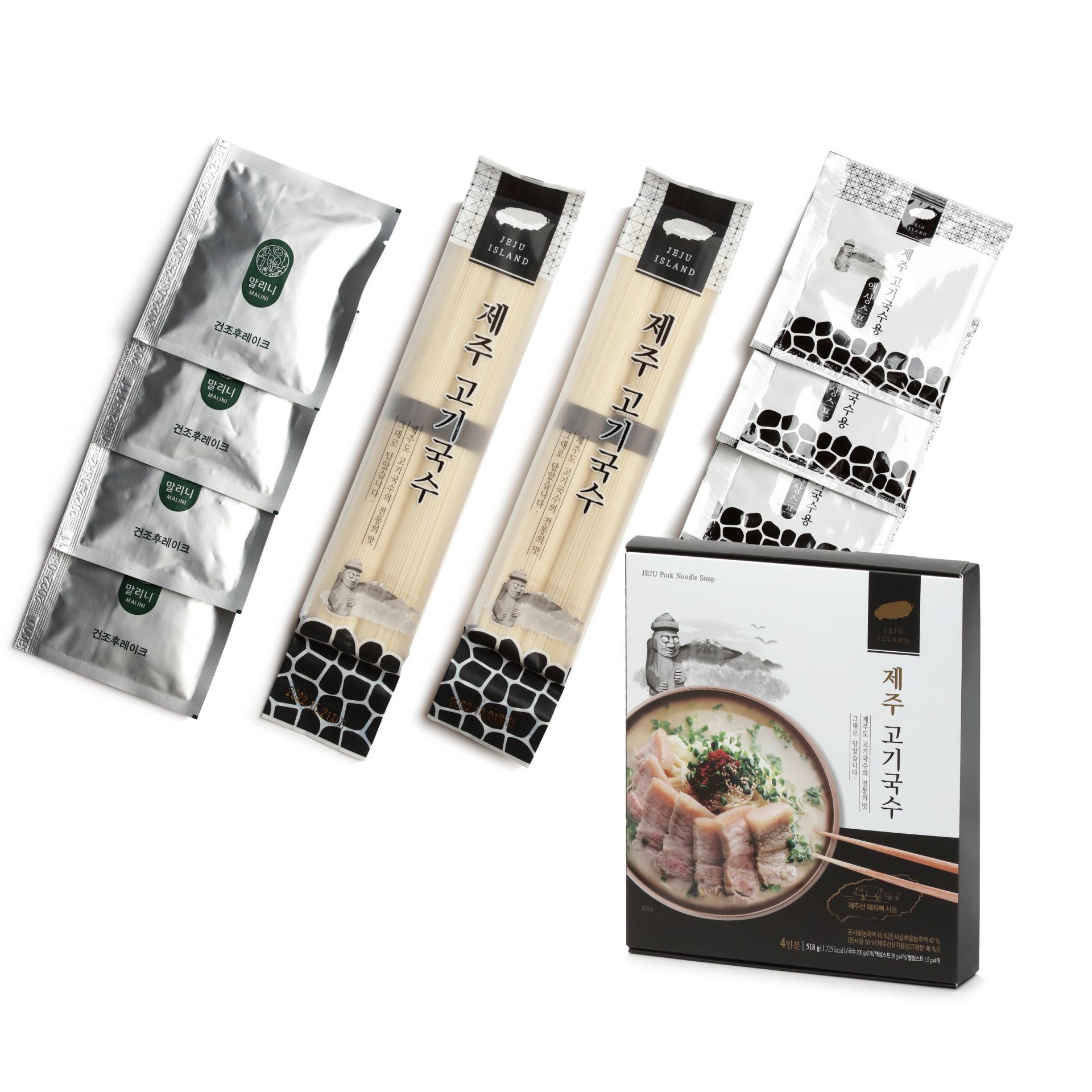 People on Jeju generally entertain company by serving freshly butchered pork for happy occasions like a wedding. Pork noodle soup might have originated from this by simmering swine bones and such then putting noodles into the broth. We made pork noodle soup thinking that this has significance as a bowl of soul food that conveys the joys of the many people in Jeju. Hopefully, the deep flavor of the bones and savory fat in the pork noodle soup gives all of us the precious memories and taste of Jeju in this post-COVID-19 era.